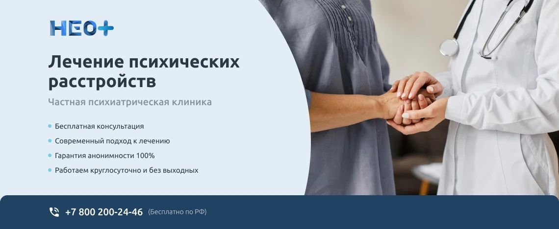 Депрессия – эмоциональное расстройство, которое влияет на качество жизни и отражается на межличностных отношениях. В запущенных ситуациях у пациента могут появляться суицидальные мысли, что делает его опасным для себя самого. Без помощи специалистов нормализовать состояние и вернуться к нормальной жизни не всегда возможно. Необходимо лечение депрессии. Провести процедуру можно, обратившись в клинику «НеоПлюс» в Чебоксарах. У нас работают психотерапевты, способны помочь даже в тяжелых случаях. Они проведут предварительную диагностику, грамотно поставят диагноз и назначат правильное лечение. Чтобы начать сотрудничество, позвоните по телефону ☎️ +7 (800) 200-24-46 или воспользуйтесь формой обратной связи на сайте. Доверяя лечение нам, вы ускоряете процесс нормализации состояния и сможете быстрее вернуться к обычной жизни.